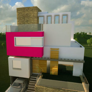 Proyecto desarrollado en un corte de terreno de 4 m y ascendente, plantea únicamente el estacionamiento a nivel de calle y el resto de la construcción en lo alto, aprovechando lo anterior se plantea un jardín en terraza, así como un roof garden con un salón de juegos para aprovechar las increíbles vistas.